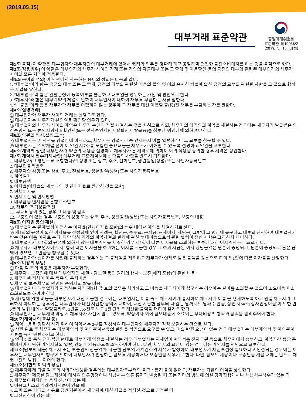 [약관안내] 대부거래 표준약관 (공정위 2019.05.15 개정)